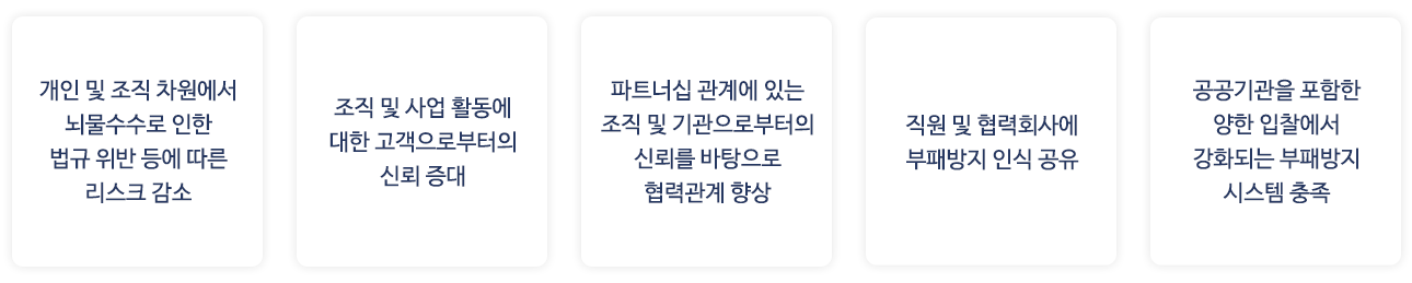 이를 기점으로 국내 정부, 공공 기관 및 다양한 산업분야에 부패 방지, 컴플라이언스, 사회적 책임 등의 인증 수요가 증가할 것으로 보입니다.