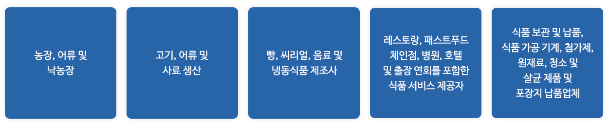 이 규격은 다음을 포함한 식품 체인 내 직접 또는 간접 관여된 모든 조직에 적용 가능합니다.